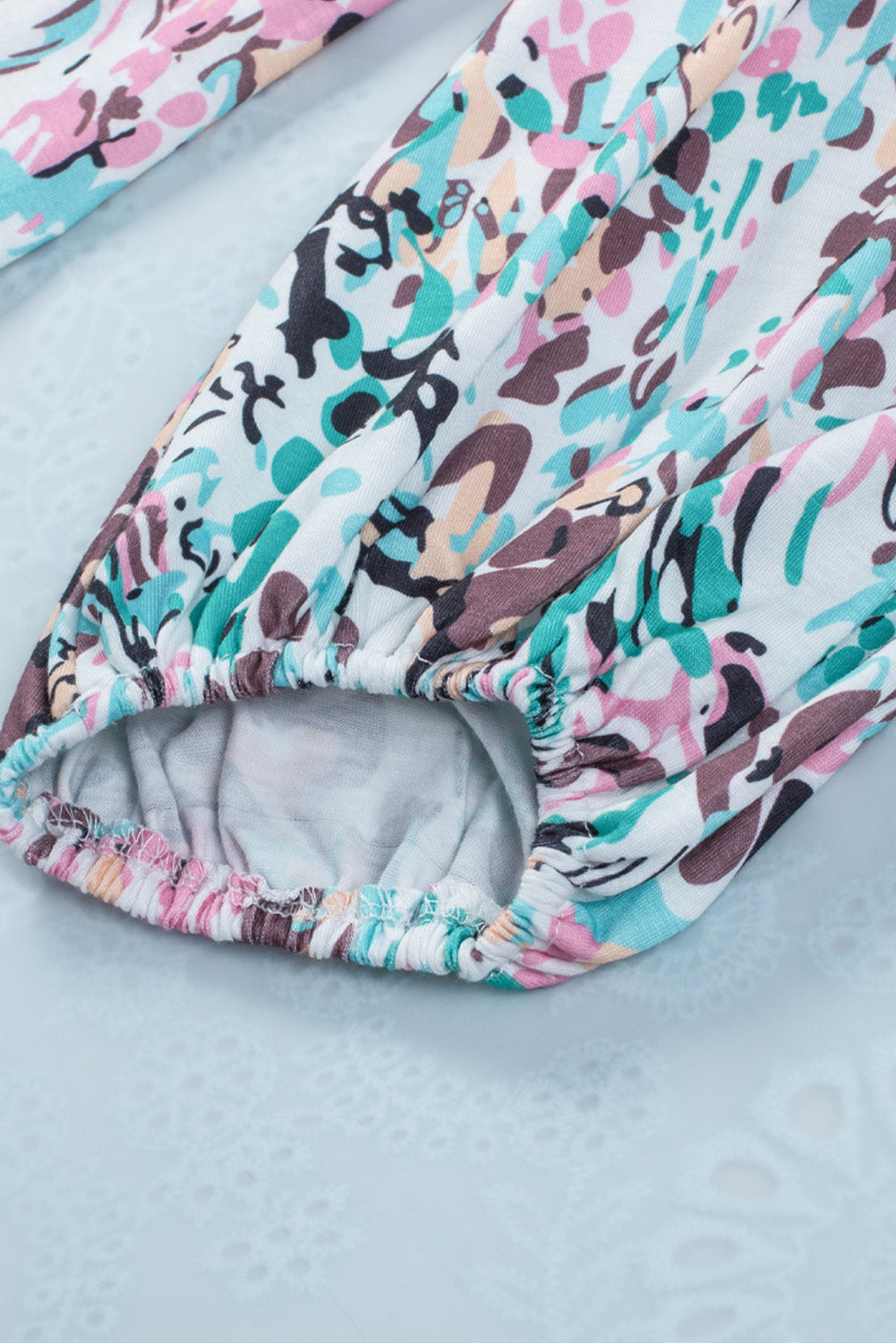 Printed Round Neck Balloon Sleeve Blouse