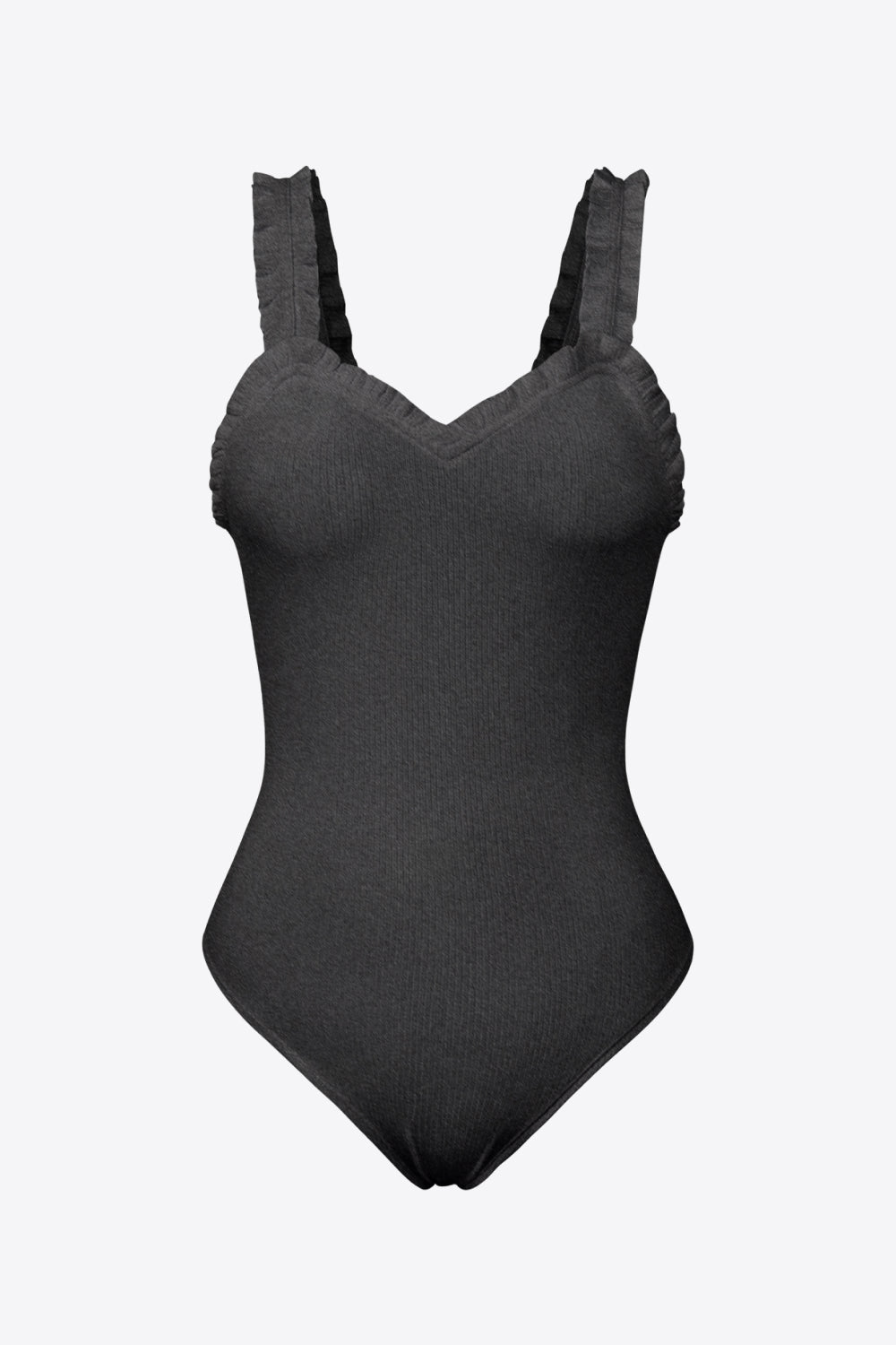 Ribbed Ruffle Trim Sleeveless Bodysuit